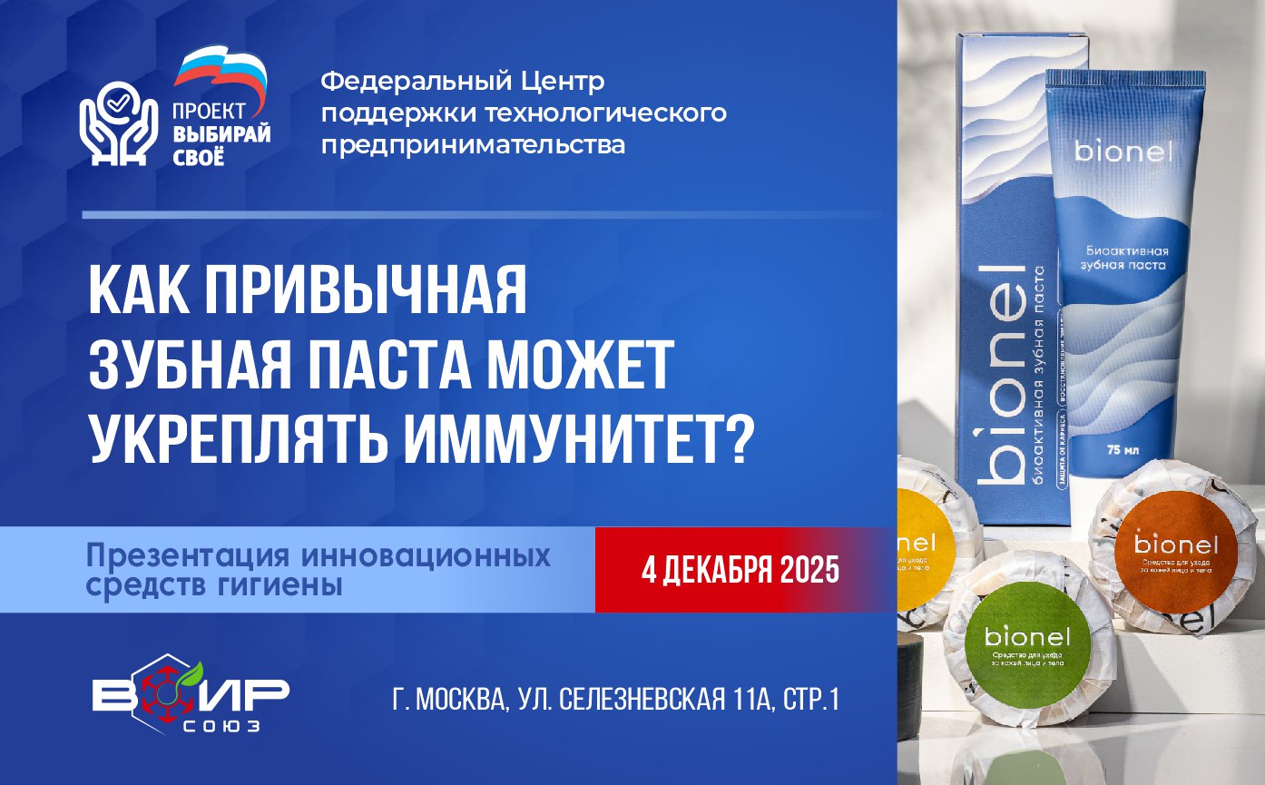 4 декабря, на площадке ФЦПТП «Выбирай своё» Союз ВОИР организовывает закрытую презентацию разработки компании ООО «ВИМАН БИО» — зубной пасты Bionel на основе биологического гидроксиапатита (не синтетического).