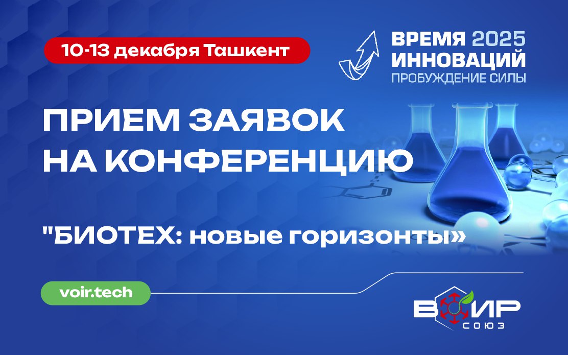 11-13 декабря в Ташкенте в рамках X Юбилейного форума «Время инноваций» при поддержке Союза ВОИР пройдет конференция БИОТЕХ: НОВЫЕ ГОРИЗОНТЫ