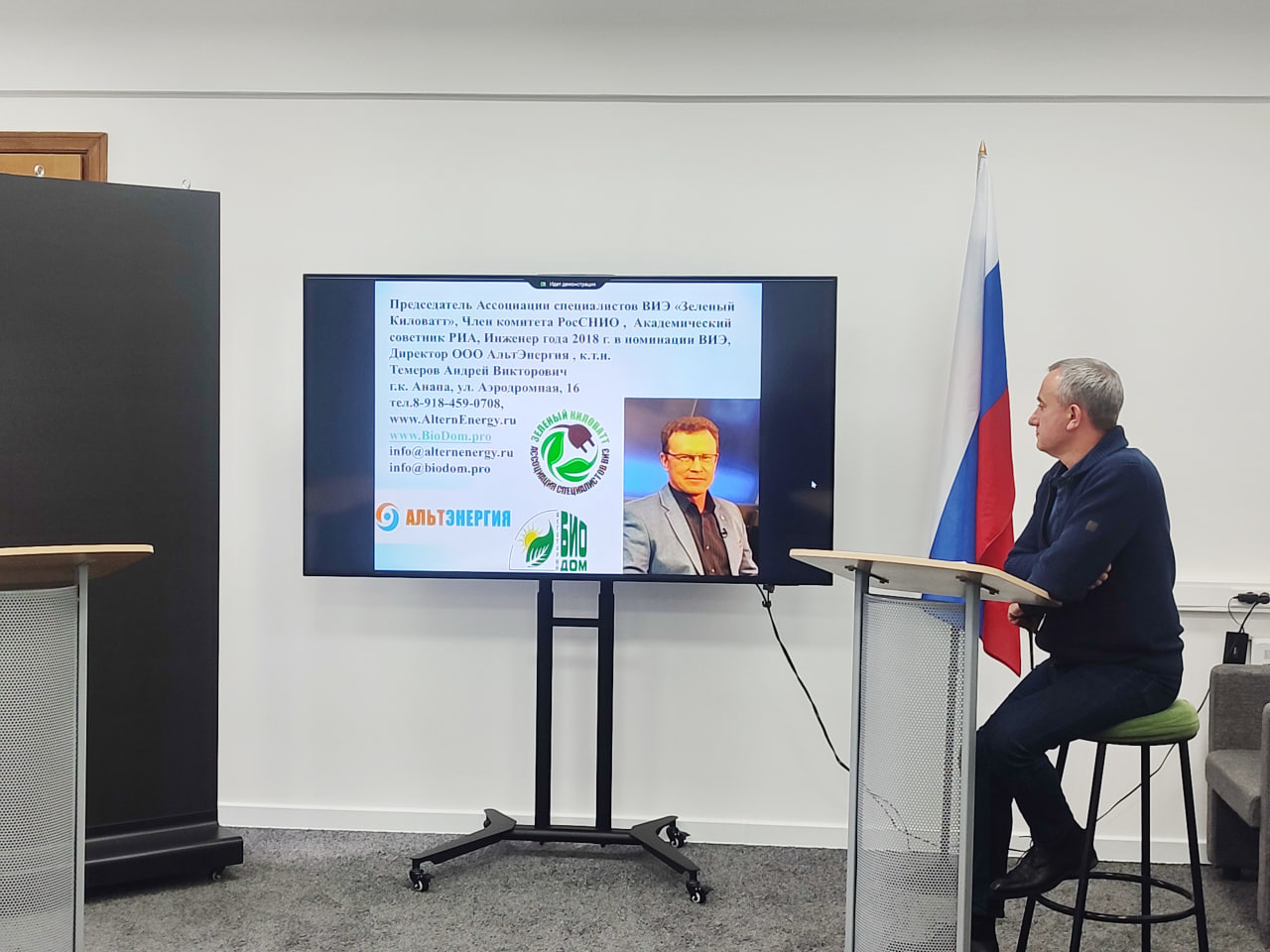 Особый интерес вызвал проект «БиоДом, ориентированный на автономное энергообеспечение жилых домов за счёт солнечных модулей, теплового насоса, грунтового теплообменника и замкнутой системы переработки отходов. Андрей Темеров, Председатель Ассоциации «Зелёный киловатт» отметил, что комплекс позволяет обеспечить все базовые потребности семьи без подключения к централизованным сетям.